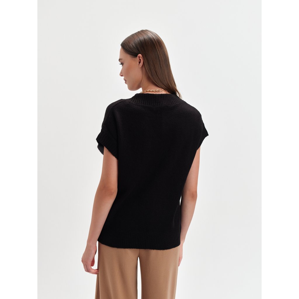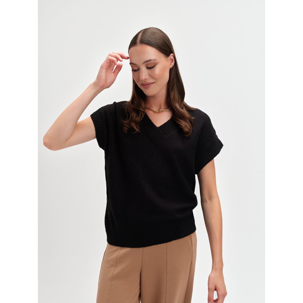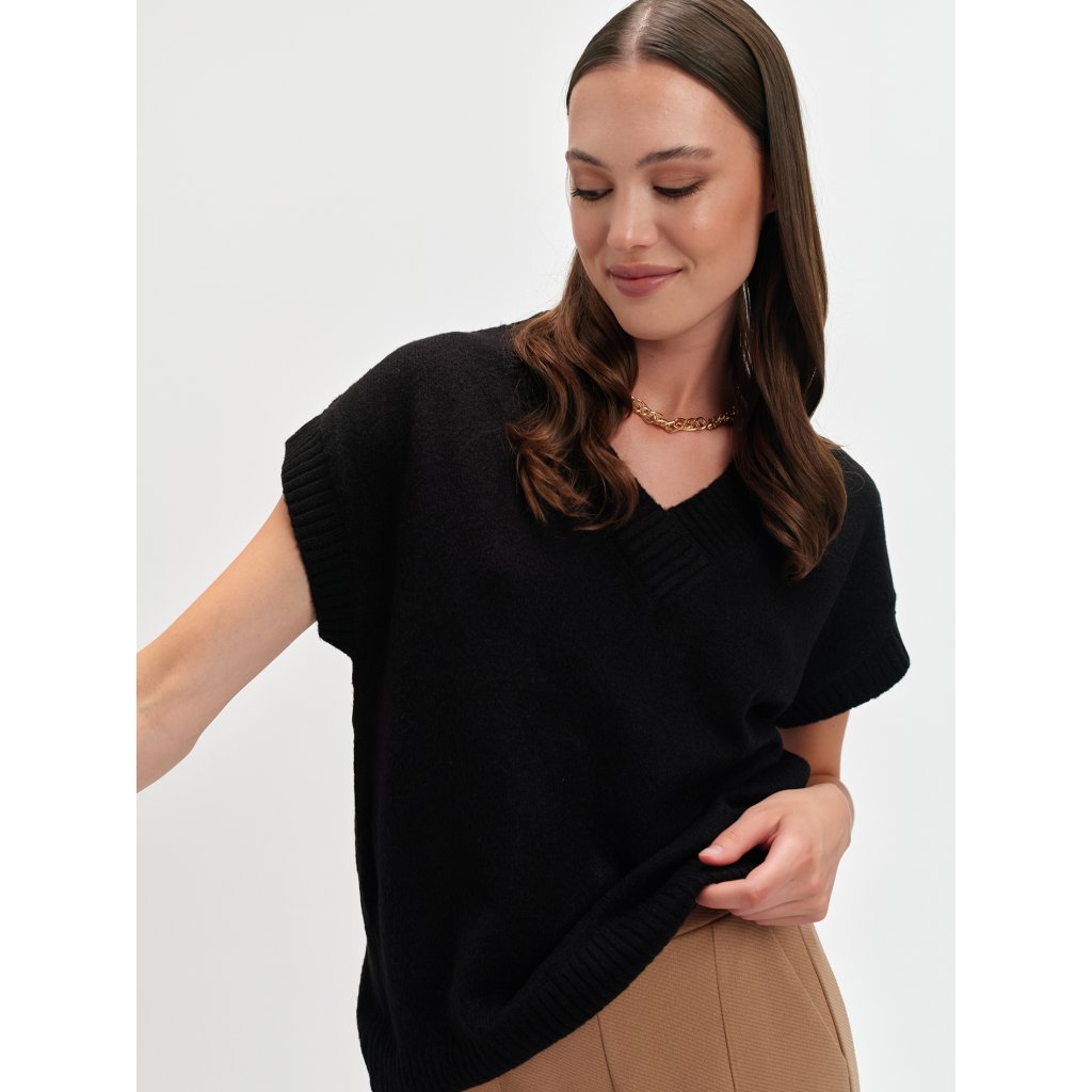 Štýlová čierna pletená vesta od značky Top Secret je univerzálnym kúskom, ktorý nesmie chýbať v modernom šatníku. Vyrobená z mäkkého, hrejivého úpletu, ponúka pohodlie a eleganciu v jednom. Voľnejší strih s krátkymi rukávmi a výstrihom do V umožňuje ľahké vrstvenie – skvelo ladí s bielou košeľou, jemným rolákom či tričkom. Rebrované zakončenia zvýrazňujú jej minimalistický, no sofistikovaný vzhľad. Čierna farba dodáva modelu nadčasovosť a ľahko sa kombinuje s akýmkoľvek štýlom – či už ide o elegantný mestský outfit alebo ležérny každodenný look.Dodatočné parametre