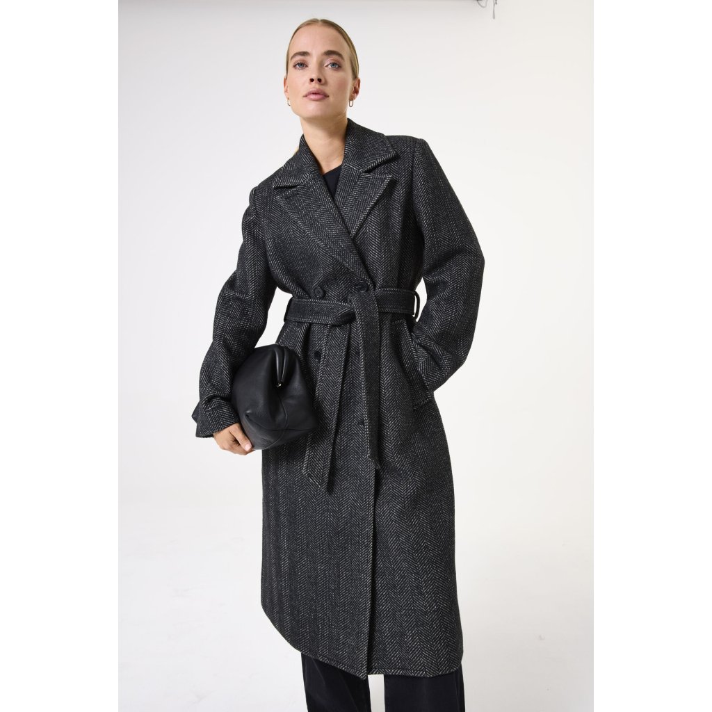 Dámsky čierny kabát so vzorom rybej kosti Garcia