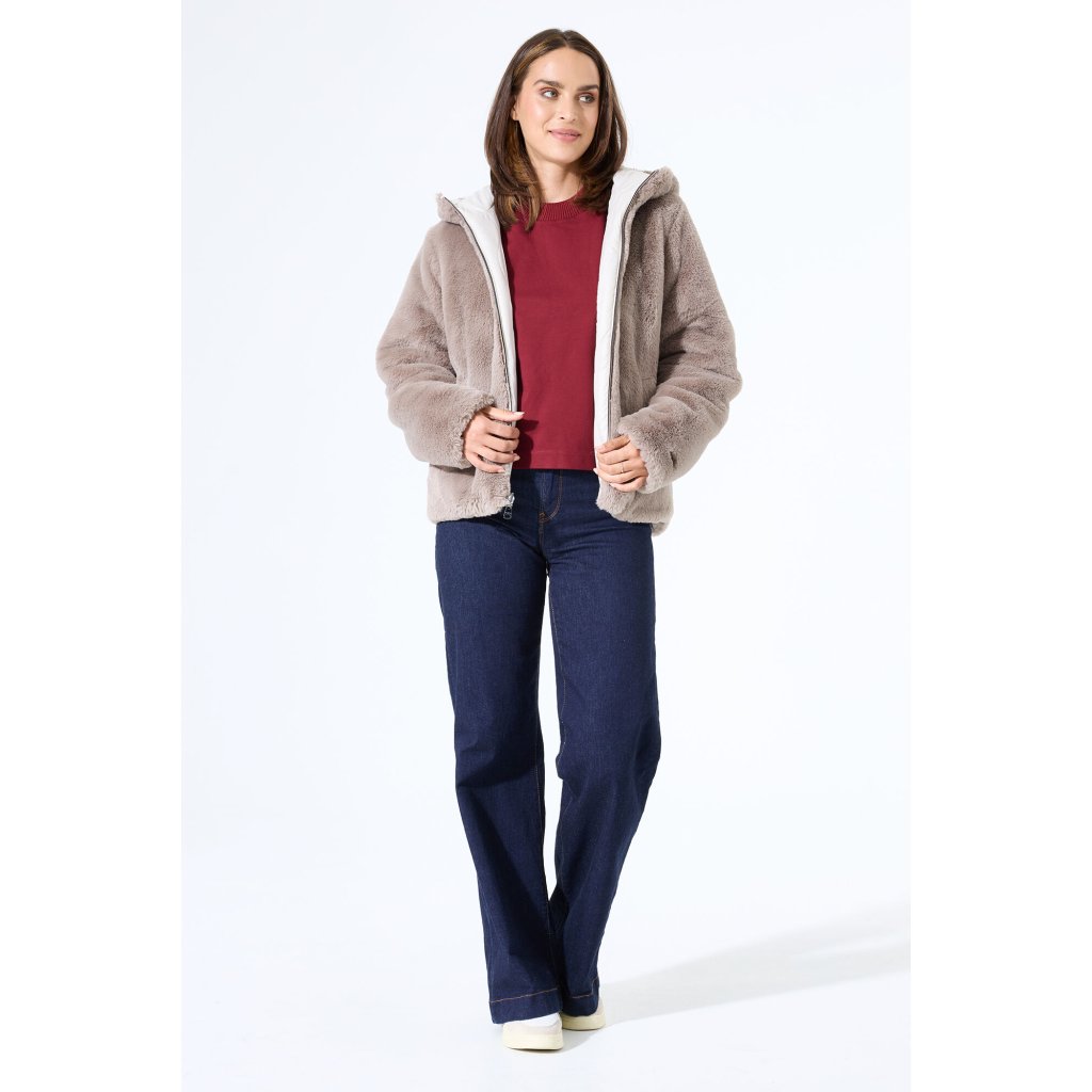 Táto obojstranná bunda od značky Garcia ponúka dva jedinečné vzhľady v jednom kúsku – z jednej strany moderný, jemne lesklý povrch v neutrálnom odtieni beige-brown, z druhej strany extrémne hebký plyšový materiál, ktorý Vás zahreje počas chladnejších dní. Vďaka relaxed fit strihu pôsobí ležérne, no stále žensky. Zipsové zapínanie, hrejivá kapucňa a jemné prešívanie dodávajú bunde štýl aj funkčnosť. Je ideálnou voľbou na prechodné obdobie – ľahká, pohodlná a pritom dostatočne teplá. Stačí otočiť a okamžite zmeníš svoj look – z elegantného mestského štýlu na útulný, zimný outfit.Dodatočné parametre