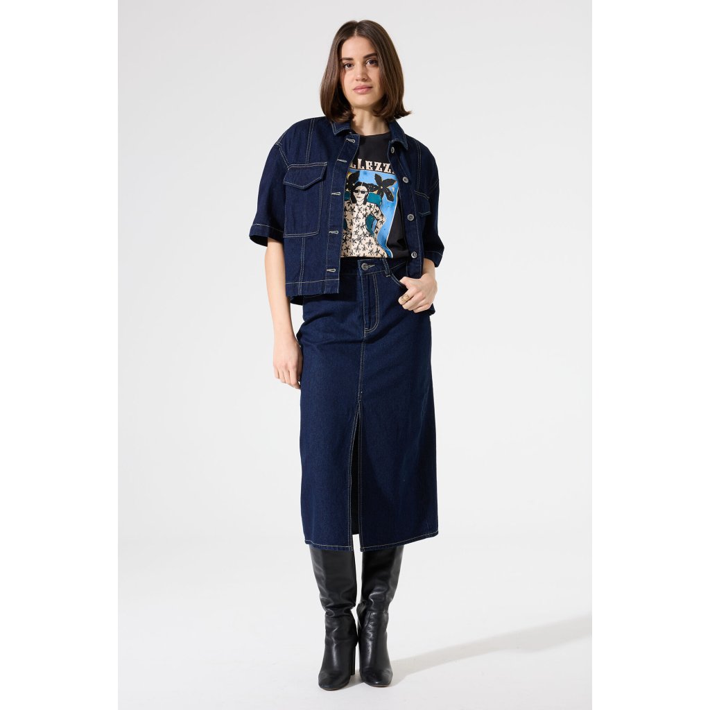 Tmavomodrá džínsová sukňa s rozparkom Garcia
