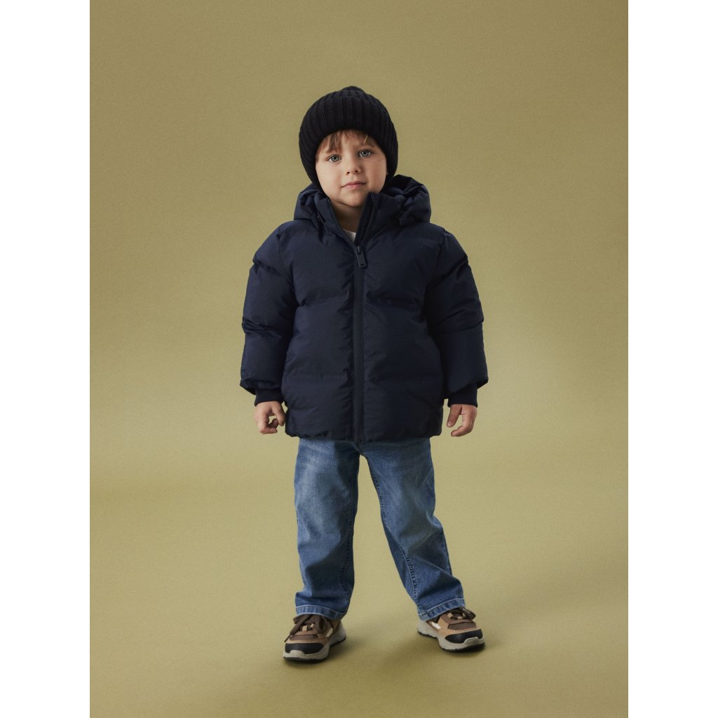 "Praktická chlapčenská bunda od značky NAME IT prinesie teplo a komfort do zimných mesiacov. Je navrhnutá v klasickom tmavomodrom odtieni, ktorý sa ľahko kombinuje s každodennými outfitmi. Prešívané prevedenie dodáva bunde moderný vzhľad, zatiaľ čo mäkká výplň spoľahlivo zahreje. Kapucňa poskytuje ochranu pred vetrom a chladom, zapínanie na zips je doplnené o praktický kryt pri krku pre ešte väčšie pohodlie. Rukávy sú zakončené vnútornými manžetami, ktoré bránia prenikaniu chladu. Bočné vrecká slúžia na odloženie drobností alebo zahriatie rúk. Táto bunda je ideálnym spoločníkom na každodenné nosenie do školy, na prechádzky či voľný čas."Dodatočné parametre