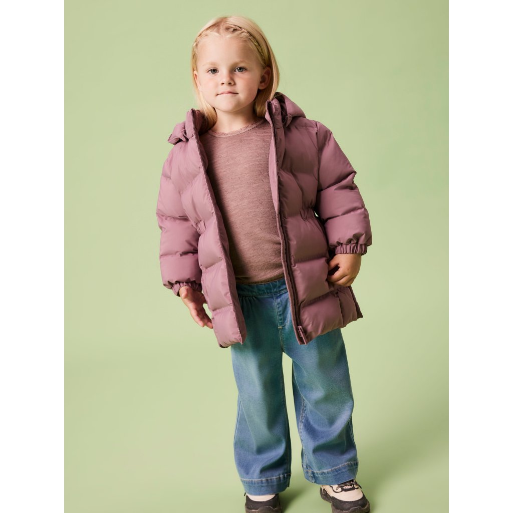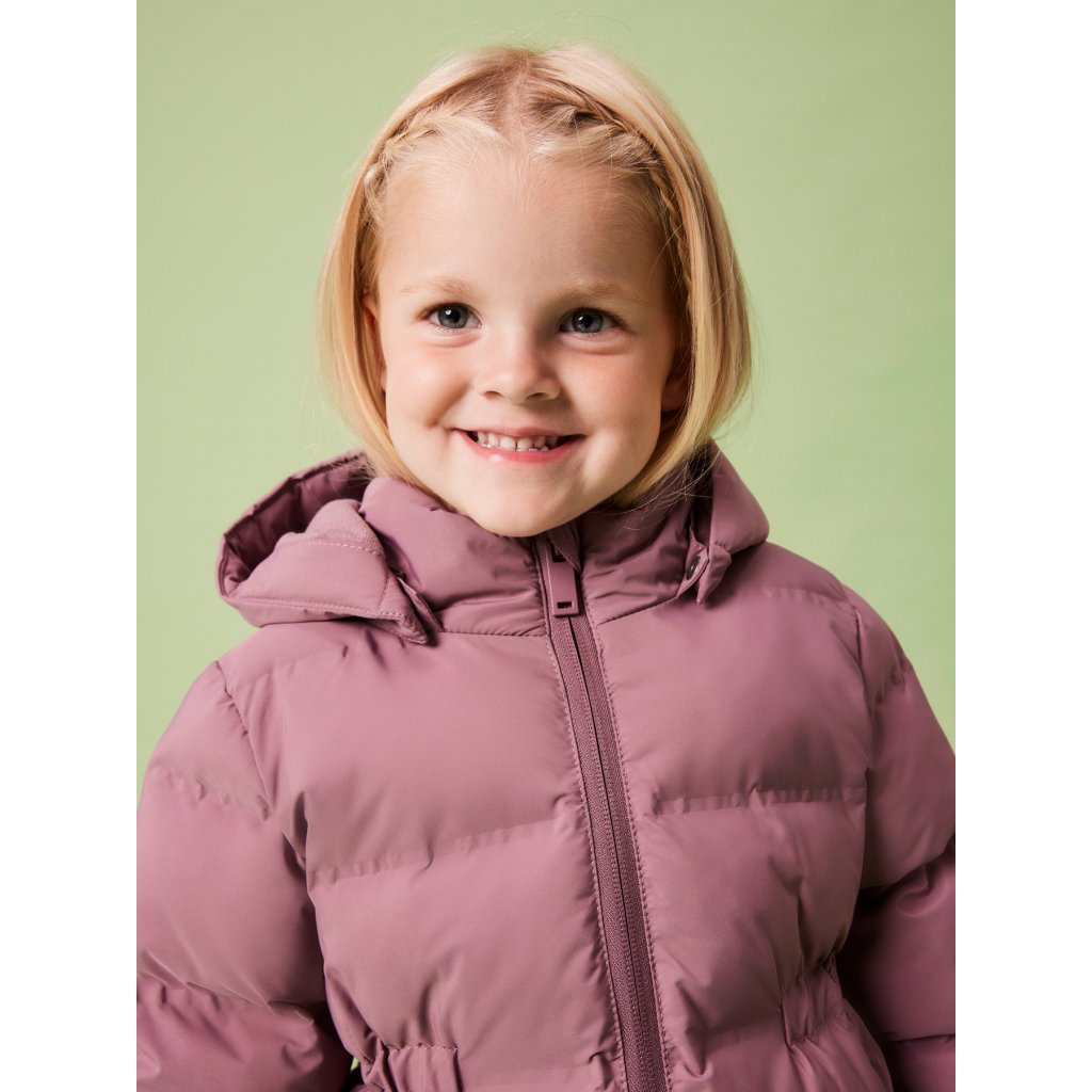 Praktická dievčenská bunda od značky NAME IT poskytuje spoľahlivú ochranu pred chladným počasím. Má klasický prešívaný dizajn s hrejivou výplňou, ktorý udrží príjemné teplo počas zimných dní. Nechýba ani pohodlná kapucňa a elastické lemy na rukávoch, ktoré bránia prenikaniu chladu. Zapínanie na zips po celej dĺžke uľahčuje obliekanie a bočné vrecká ponúkajú priestor na drobnosti aj zahriatie rúk. Bunda je vyrobená zo 100 % recyklovaného polyesteru, vďaka čomu je nielen odolná a ľahká na údržbu, ale aj šetrnejšia k životnému prostrediu. Jednofarebný dizajn v jemnom odtieni staroružovej farby pôsobí dievčensky a ľahko sa kombinuje s ostatným oblečením.Dodatočné parametre