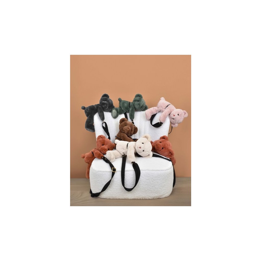 Adoptujte si taštičku DOUDOU medvedík, ideálny doplnok, ktorý spája pohodlie a praktickosť! Tento batoh na rameno s rozmerom 30 cm je ako hebké hniezdočko, ktoré si môžete vziať kamkoľvek so sebou.