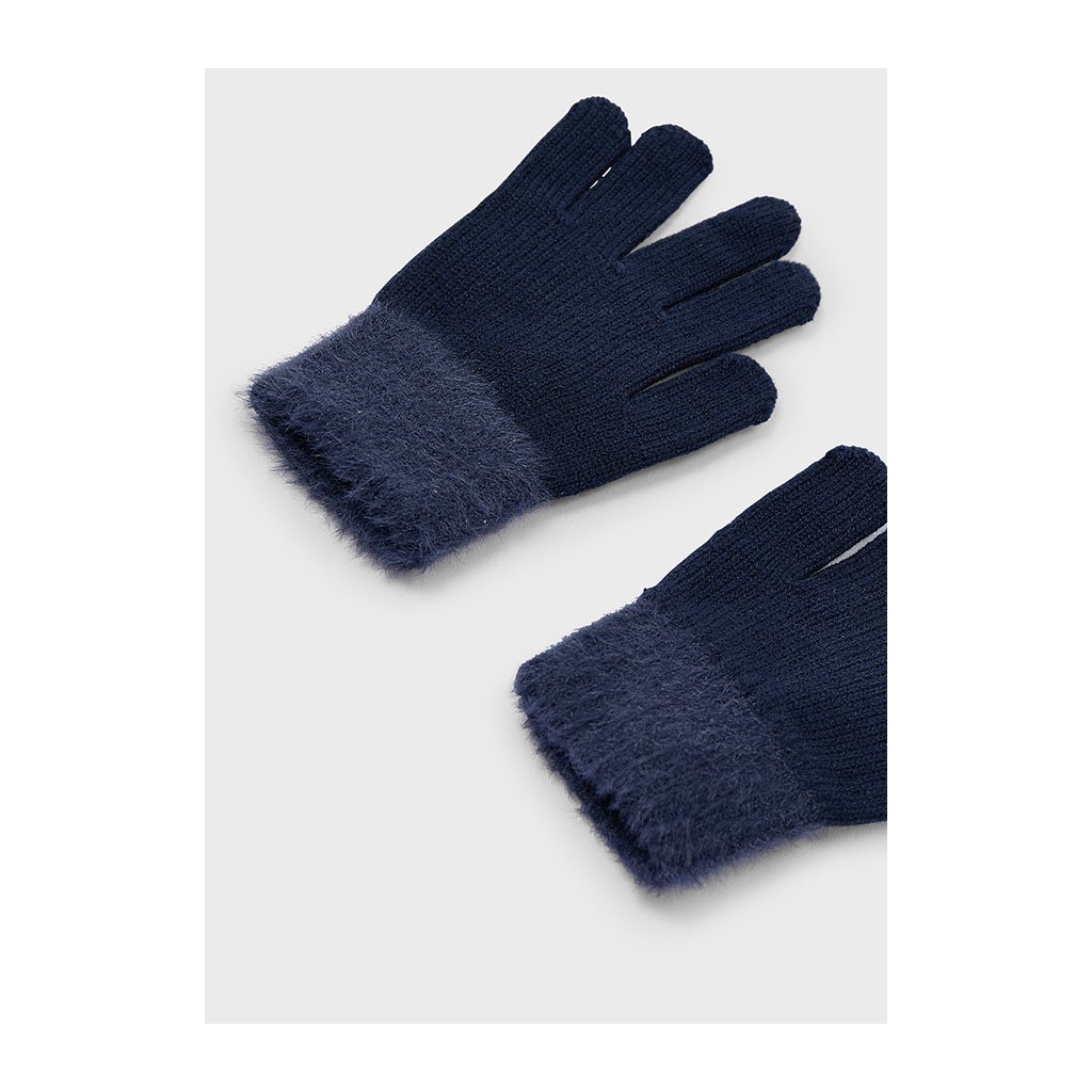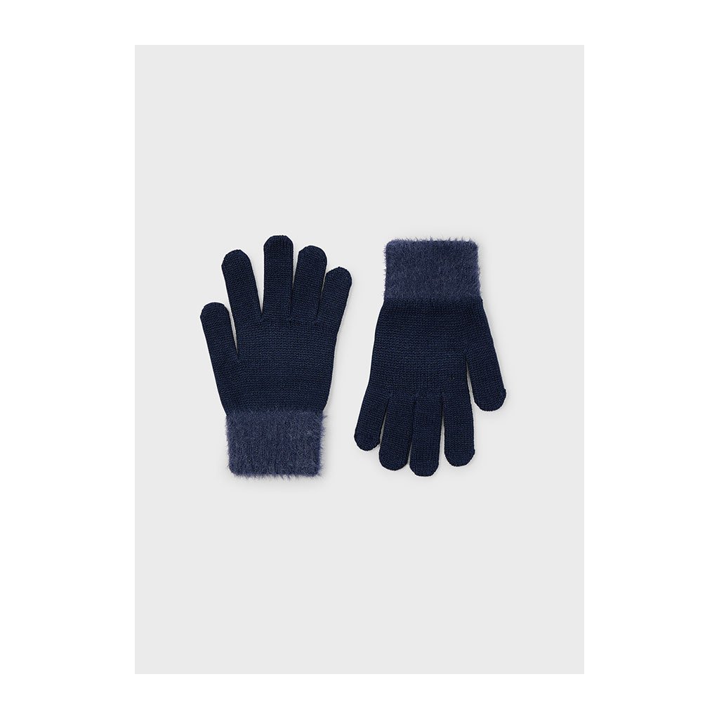 Štýlové a hrejivé rukavice pre dievčatá od značky Mayoral. Vyrobené z mäkkého úpletu, ktorý poskytuje pohodlie a teplo počas chladných dní. Lem rukavíc je ozdobený jemnou umelou kožušinkou, ktorá im dodáva elegantný a roztomilý vzhľad. Perfektný doplnok k zimnému kabátiku alebo bunde – ideálne na každodenné nosenie do školy aj na voľný čas. Dostupné v tmavomodrej farbe.Dodatočné parametre