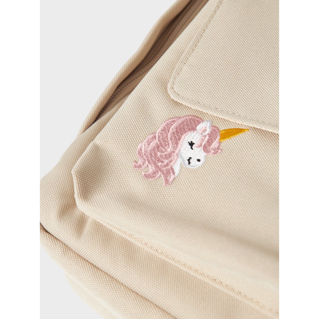 Štýlový a praktický ruksak v jemne béžovej farbe od znaky NAME IT poteší každé dievča milujúce rozprávkové motívy. Výšivka ružového jednorožca mu dodáva hravý vzhľad, zatiaľ čo kontrastné ružové popruhy zabezpečujú pohodlné nosenie. Ruksak má priestrannú hlavnú priehradku na zips a predné vrecko so zapínaním na suchý zips, ideálne na drobnosti. Odolný materiál zvládne každodenné nosenie do škôlky, na výlety či krúžky. Praktické úchyty na vrchu umožňujú aj nosenie v ruke alebo jednoduché zavesenie.Dodatočné parametre