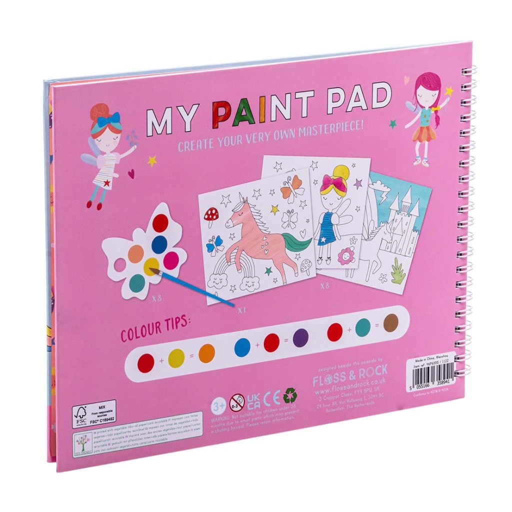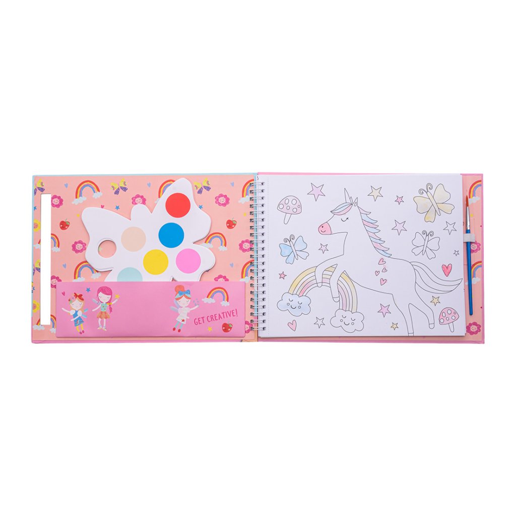 Špirálovo viazaný maliarsky zošit, ktorý obsahuje 8 jednotlivých farebných paliet v tvare motýľa, 8 nádherných vytrhávacích obrázkov a štetec. Jednoducho pridajte malé množstvo vody na štetec, prejdite štetcom po farbe na palete a potom namaľujte svoje majstrovské dielo! Palety farieb a štetec sú bezpečne uložené, keď sa nepoužívajú, takže sú ideálne na maľovanie na cestách!