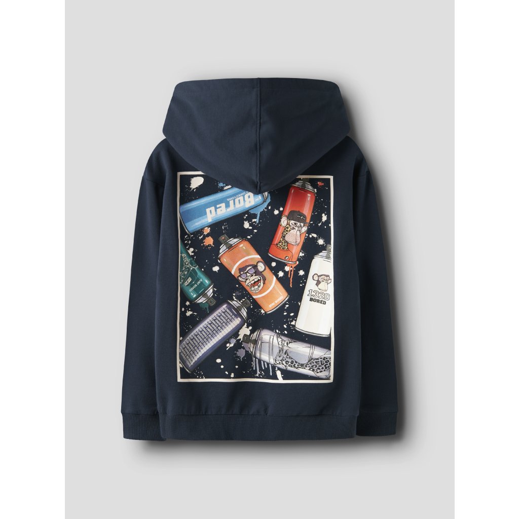 Tmavomodrá chlapčenská mikina s kapucňou a grafickou potlačou NAME IT