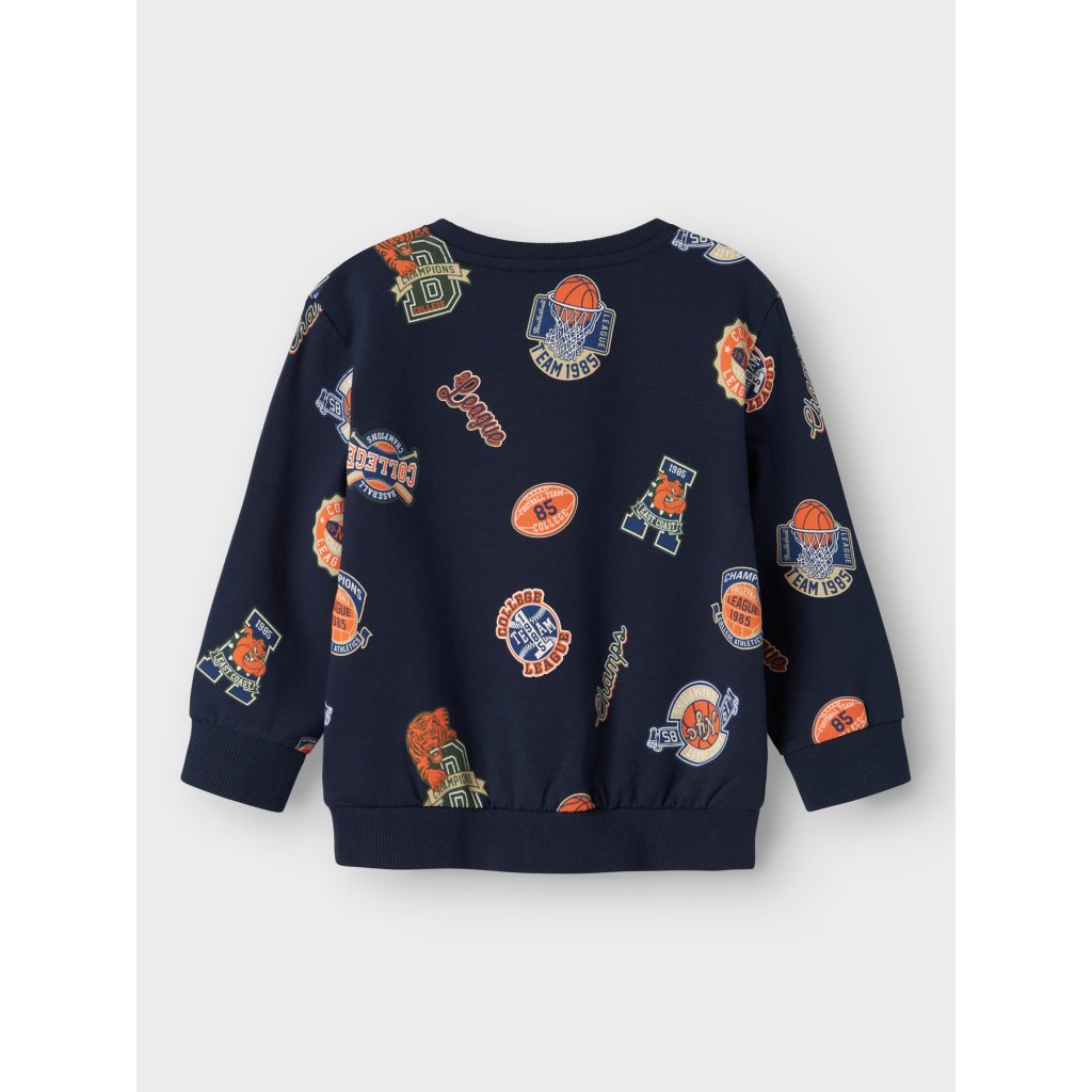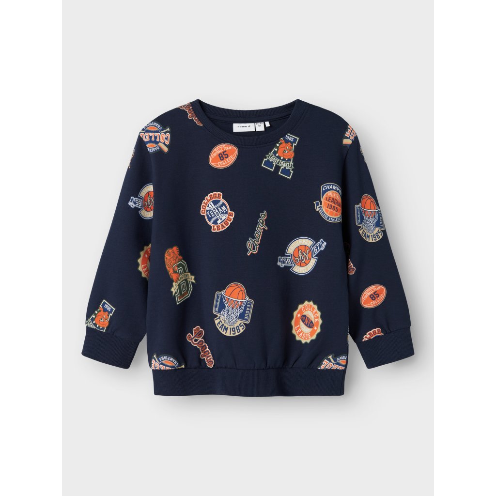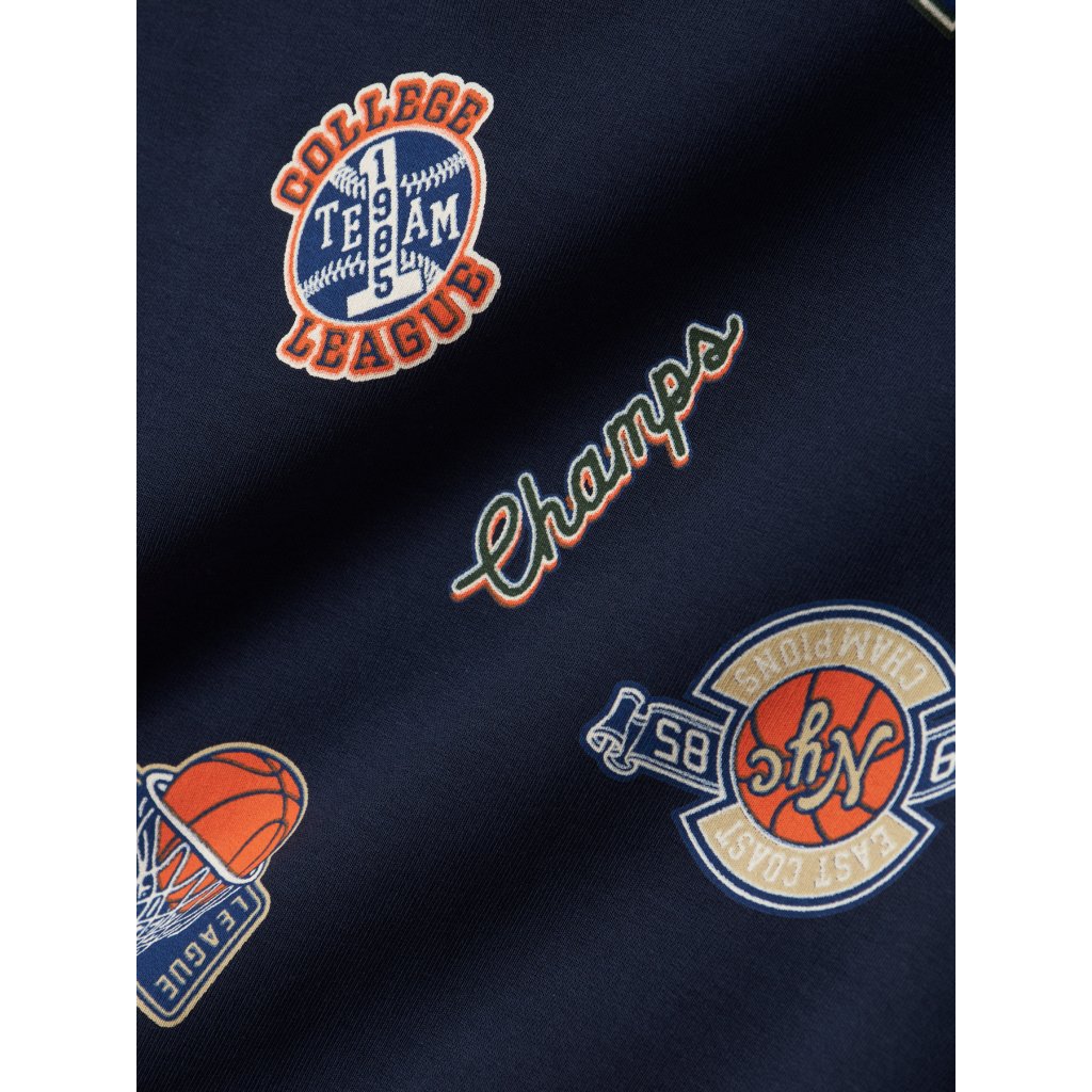 Štýlová a výrazná chlapčenská mikina od značky NAME IT , ktorá nadchne každého malého fanúšika športového štýlu. Tmavomodrý základ dopĺňa celoplošná potlač s motívmi basketbalu, baseballu, tigrov a typografických prvkov ako „League“, „Team 1985“ či „College Champs“. Mikina tak pôsobí hravo a zároveň trendy. Vďaka klasickému strihu, okrúhlemu výstrihu a rebrovaným lemom na rukávoch a spodnom okraji je veľmi pohodlná na každodenné nosenie – ideálna do školy, na ihrisko aj voľný čas. Perfektne sa hodí k teplákom z našej najnovšej kolekcie.Dodatočné parametre