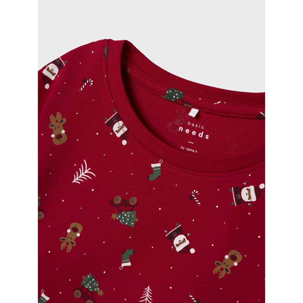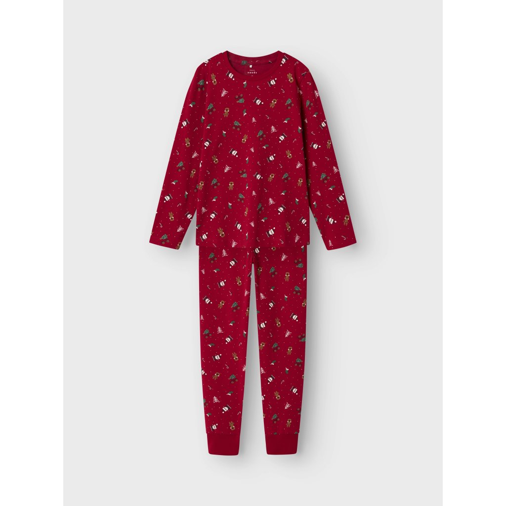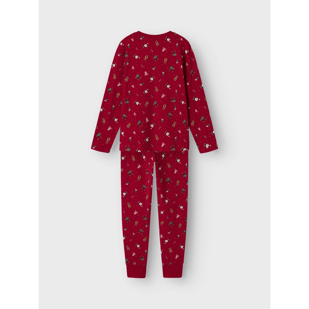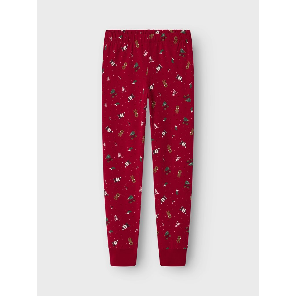 Veľmi pekne červené unisex pyžamo od NAME IT prinesie do zimných večerov čarovnú vianočnú atmosféru. Skladá sa z pohodlného trička s dlhým rukávom a mäkkých nohavíc s rebrovanými manžetami. Jasne červený základ zdobí hravá sviatočná potlač s medovníčkami, stromčekmi, sobíkmi či cukrovými palicami, ktorá poteší každé dieťa. Elastický pás na nohaviciach sa postará o pohodlné nosenie a voľný strih zabezpečí komfortný spánok. Pyžamo je vyrobené z vysokokvalitnej bavlnenej látky, ktorá je priedušná a šetrná k detskej pokožke.Dodatočné parametre
