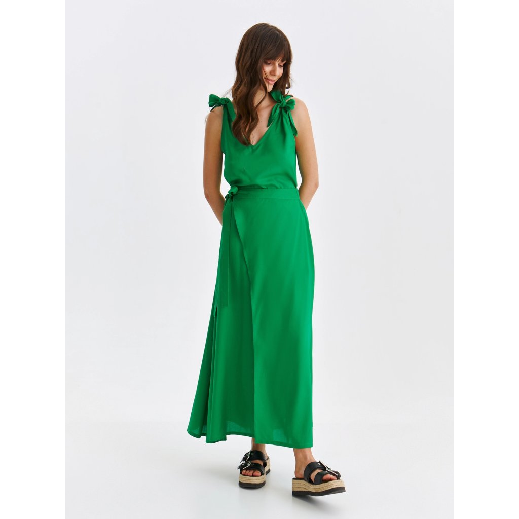 Táto krásna dámska zavinovacia sukňa od značky Top Secret má elegantný, dlhý strih, ktorý siahne až po členky. Je voľná a splývavá, čím poskytuje maximálne pohodlie a zároveň sofistikovaný vzhľad. V páse je previazaná šnúrkou, ktorá zvýrazňuje postavu a zároveň udržuje pohodlie. Vďaka svojmu minimalistickému dizajnu a sýtej farbe je vhodná na letné dni či večerné podujatia, kde chcete vyniknúť elegantným štýlom. V predaji v zelenej farbe.Dodatočné parametre