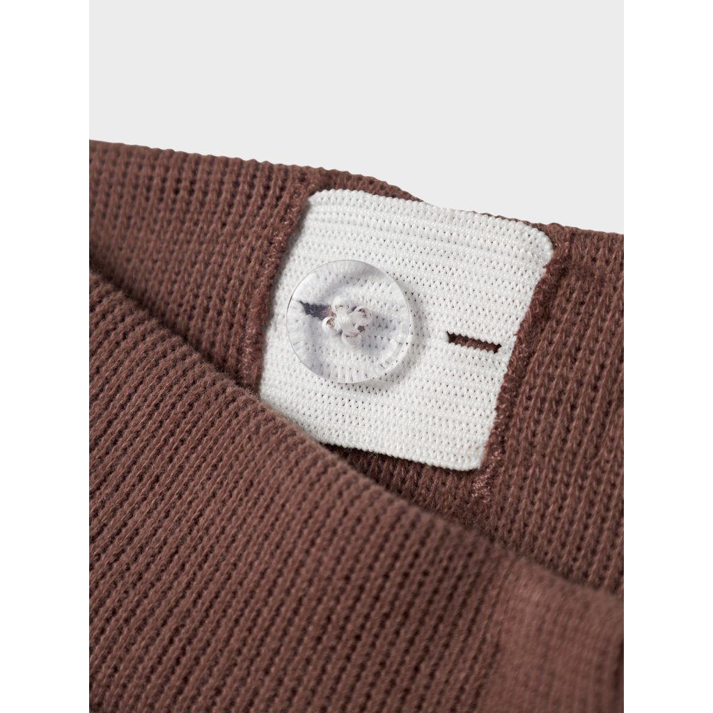 Tepláky sú neodmysliteľnou súčasťou detského šatníka – a vždy sa nájde miesto pre ďalší pár. Tieto dievčenské tepláky od značky NAME IT v hnedej farbe ponúkajú dokonalú rovnováhu medzi pohodlím a štýlom. Vyrobené z mäkkej bavlnenej zmesi, sú príjemne priedušné a ideálne na každodenné nosenie doma, vonku či v škôlke. Elastický pás a pružné lemy zabezpečia pohodlie počas celého dňa. Doplnené o dve zadné vrecká pre praktický a minimalistický vzhľad.Dodatočné parametre