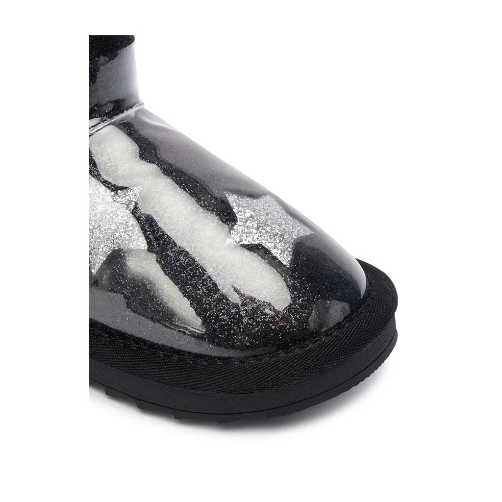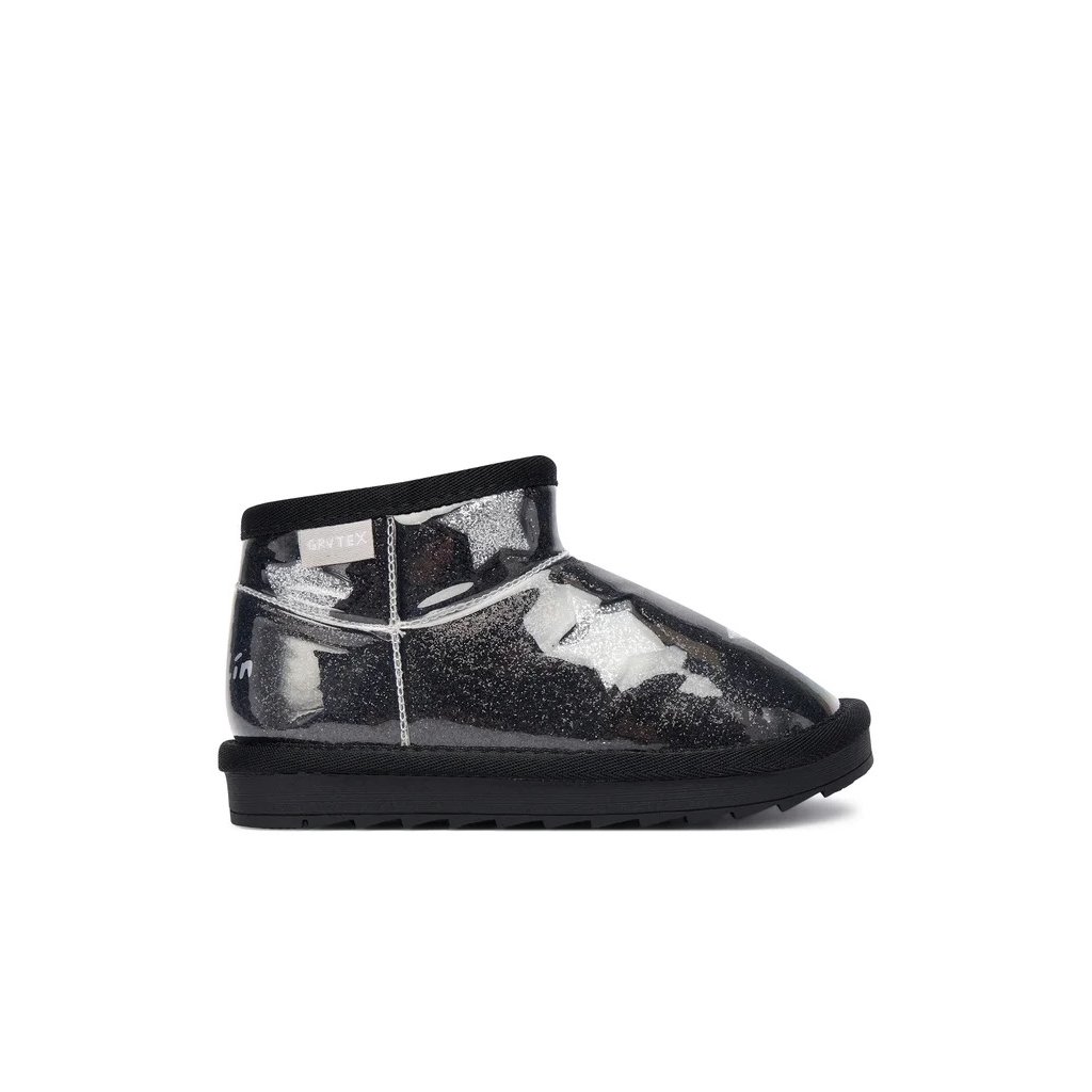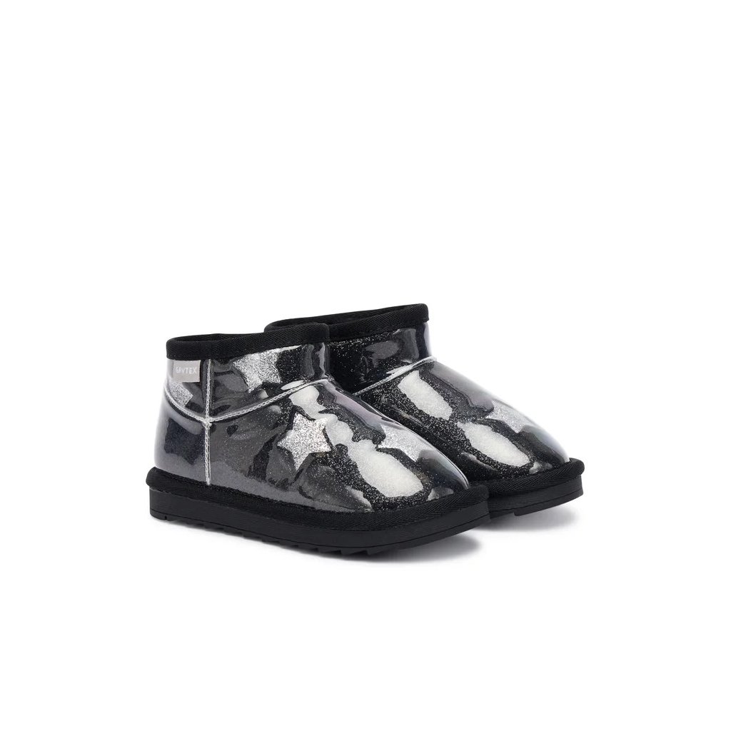Čierne dievčenské snehule Garvalín sú štýlovým zimným kúskom, ktorý spája lesk a funkčnosť. Povrch topánok je potiahnutý lesklým materiálom s jemnými trblietkami a s dekoratívnymi hviezdami, čo im dodáva hravý a moderný vzhľad. Vďaka použitej technológii SYN-TEX sú nepremokavé a zároveň priedušné, takže udržia nohy v teple a suchu aj počas chladných zimných dní. Model má praktické krátke prevedenie s čiernou podrážkou s protišmykovým vzorom, ktorý zaručuje stabilitu pri chôdzi na snehu či ľade. Mäkká vnútorná podšívka poskytuje maximálne pohodlie a hrejivosť, takže deti sa v nich budú cítiť komfortne počas celého dňa.