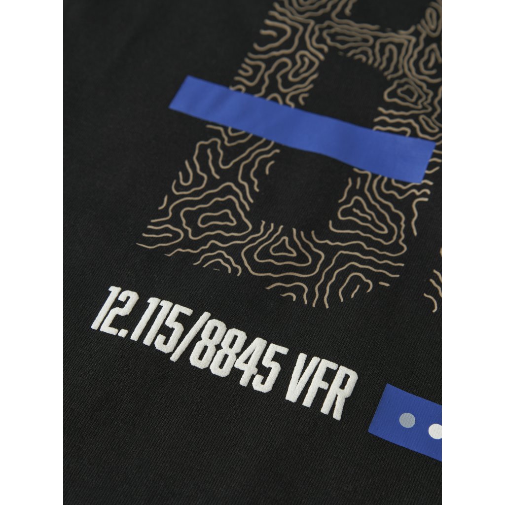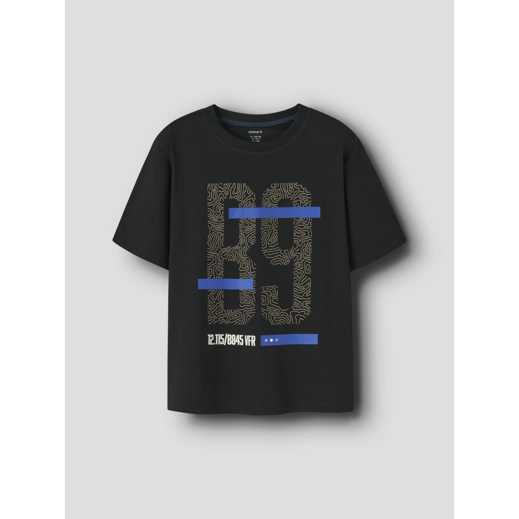 Modné tričko od značky NAME IT v čiernom prevedení je ozdobené výraznou grafickou potlačou s číslami a kontrastnými modrými pruhmi. Moderný dizajn dodáva outfitu štýlový vzhľad a ľahko sa kombinuje s ďalšími kúskami v šatníku. Tričko má rovný strih, krátke rukávy a klasický okrúhly výstrih, čo zaručuje komfort a univerzálne využitie. Bavlnený materiál je mäkký, priedušný a ideálny na celodenné nosenie do školy aj vo voľnom čase. Praktický a trendy kúsok, ktorý nesmie chýbať v chlapčenskom šatníku.Dodatočné parametre