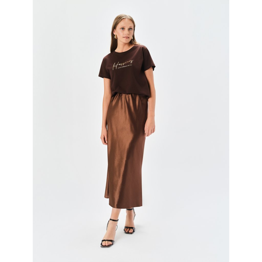 Tmavohnedé tričko od značky Top Secret spája jednoduchosť s nenútenou eleganciou. Vyrobené zo 100 % kvalitnej bavlny, zaručuje celodenné pohodlie a príjemný pocit na pokožke. Prednú časť zdobí jemný, lesklý nápis „Happiness looks gorgeous on you“, ktorý dodáva modelu pozitívny nádych a štipku ženskosti. Klasický strih sa ľahko kombinuje – dokonale ladí s džínsami, sukňou či elegantnými nohavicami. Ideálna voľba pre každý deň, keď chcete vyzerať štýlovo a cítiť sa pohodlne.Dodatočné parametre