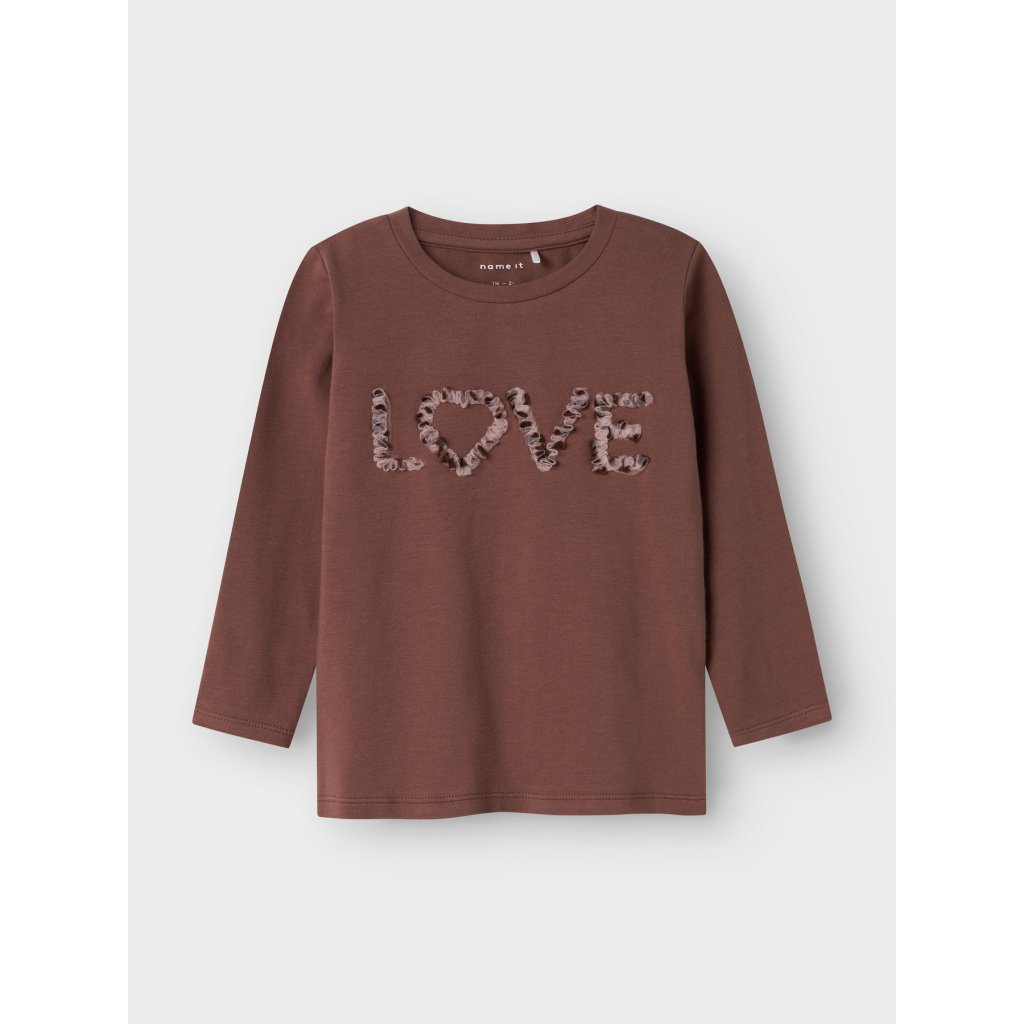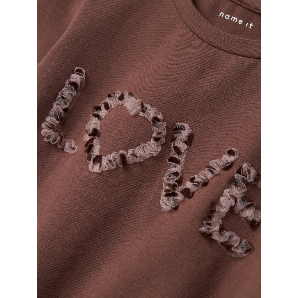 Toto rozkošné tričko od značky NAME IT si získa srdce každej malej parádnice. V teplej hnedej farbe pôsobí príjemne a štýlovo zároveň, no najväčšiu pozornosť púta 3D nápis LOVE na hrudi, vytvorený z jemných volánikov, ktoré dodávajú outfitu nežný a hravý dotyk. Vyrobené z mäkkej a priedušnej bavlnenej tkaniny, poskytuje celodenný komfort pri hre aj oddychu. Dlhé rukávy ho predurčujú na chladnejšie dni, či už ako samostatný kúsok, alebo ako spodná vrstva pod mikinu či sveter.Dodatočné parametre
