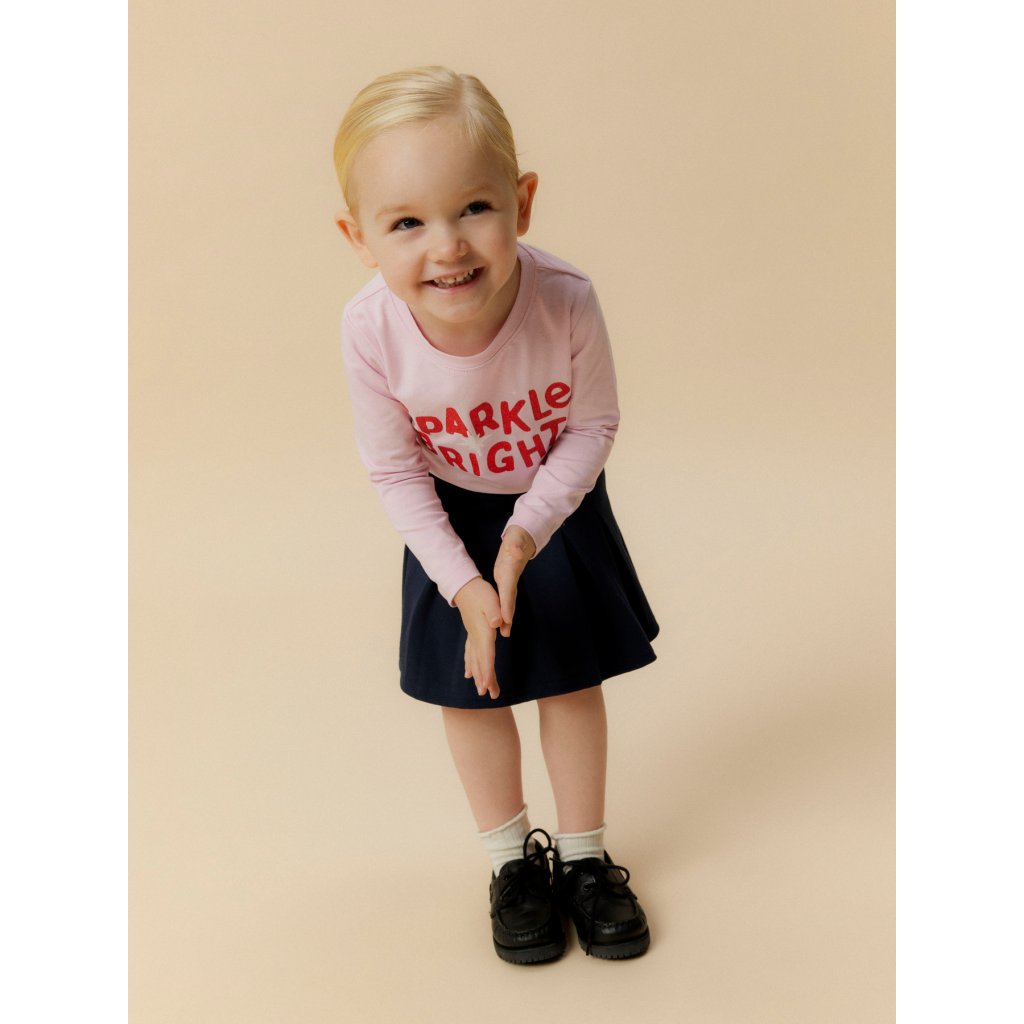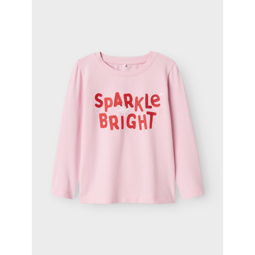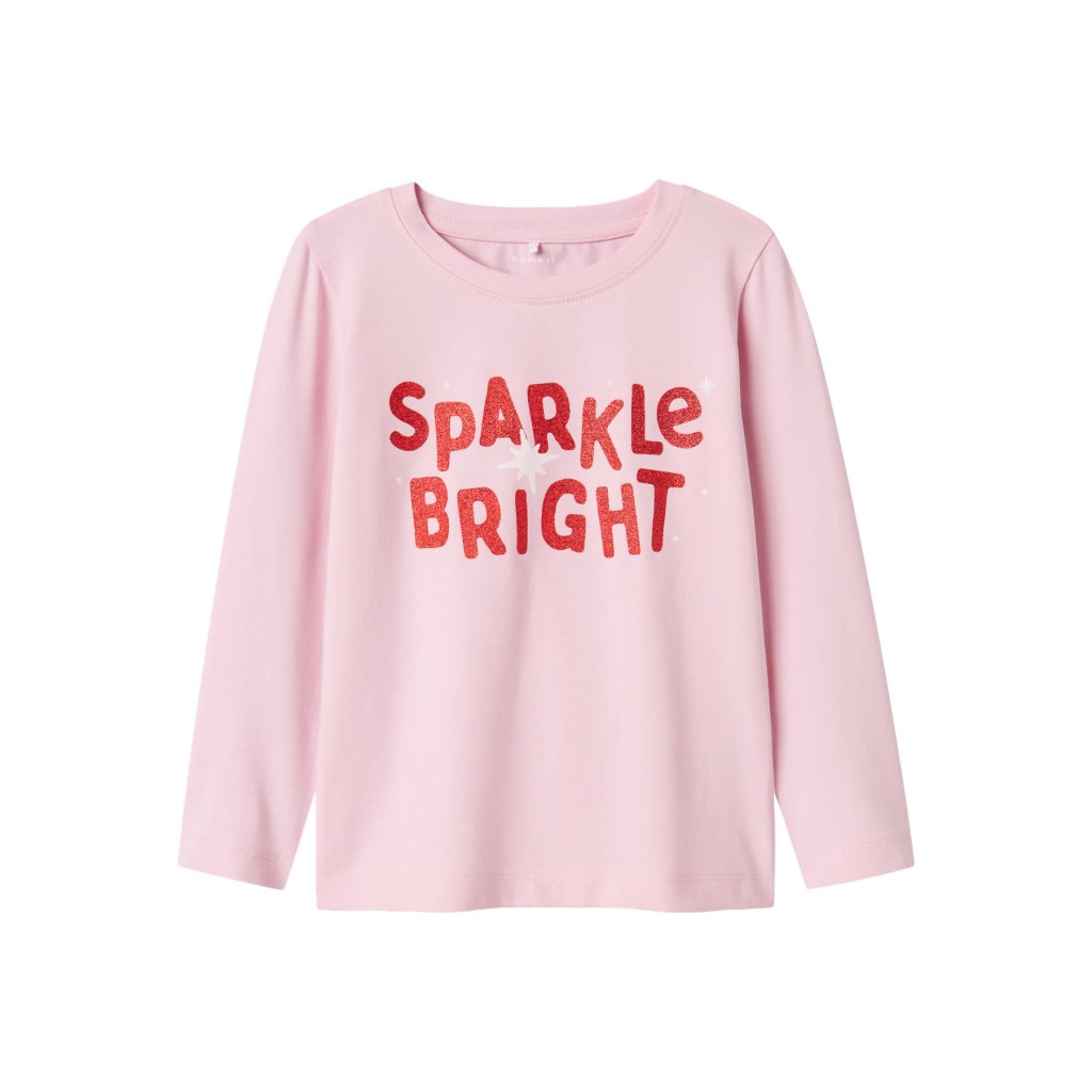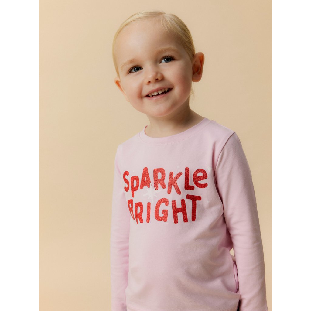 Toto dievčenské tričko od značky NAME IT spája nežnosť s pozitívnou energiou. Mäkký bavlnený materiál s prímesou elastanu sa postará o celodenný komfort, zatiaľ čo svetloružová farba pôsobí jemne a dievčensky. Stredobodom dizajnu je výrazný nápis „Sparkle Bright“ v žiarivej červenej farbe s trblietavým efektom, ktorý dodáva modelu optimistický a hravý charakter. Klasický strih s dlhými rukávmi a okrúhlym výstrihom zaručuje pohodlné nosenie, vďaka čomu je tričko ideálne na každý deň – do školy, na návštevu aj na voľný čas.Dodatočné parametre