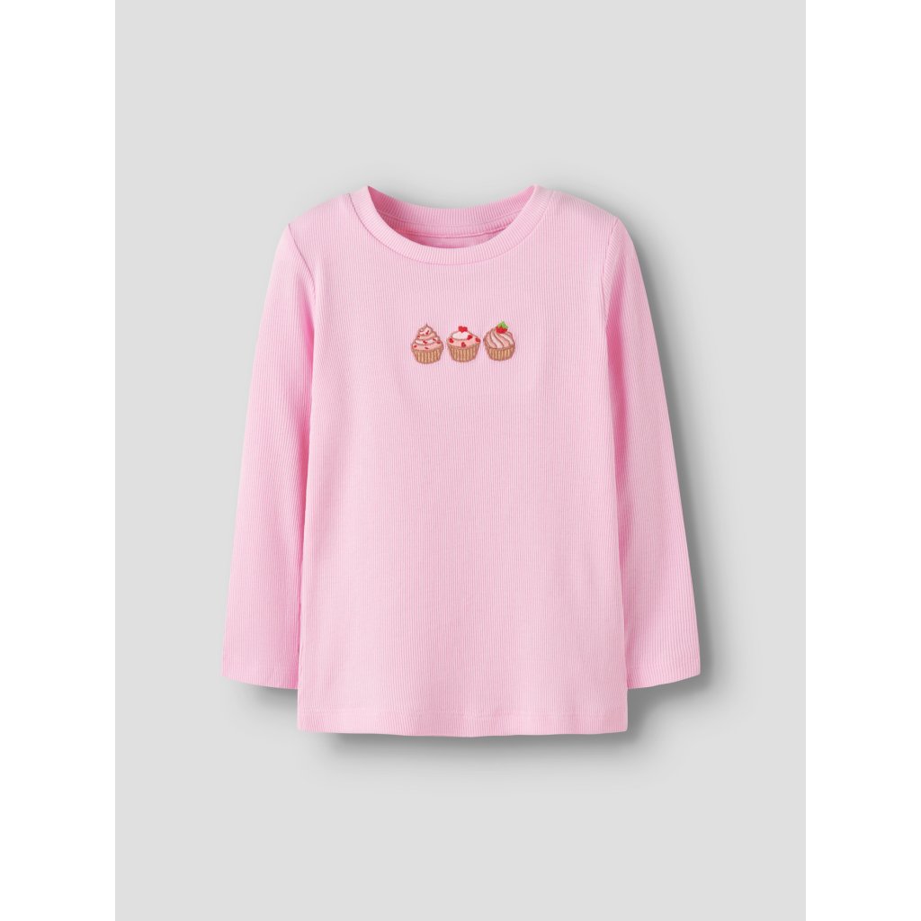 Rebrované ružové tričko s výšivkou pre dievčatá NAME IT