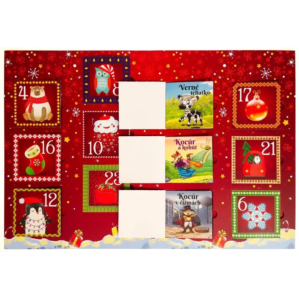 Čím viac sa blížia Vianoce, tým skôr sa ich nemôžeme dočkať. Premeňte dlhé večery plné očakávania na radostné a kúzelné chvíle. Za okienkami tohto adventného kalendára sa ukrývajú malé knižky. Každý večer pred spaním po celý december až do Štedrého dňa si môžete spoločne prečítať jednu rozprávku a vytvoriť si peknú rodinnú predvianočnú tradíciu. Vnútri kalendára nájdete 24 okienok so známymi rozprávkami, ako napríklad Škaredé káčatko, Popoluška, O pampúšikovi, Tri malé prasiatka, Vlk a kozliatka alebo Princezná na hrášku.Dodatočné parametre